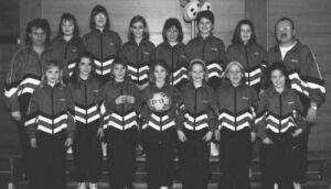 1929 - 1999: 70 Jahre DJK UnterspiesheimKorbball-AbteilungMini 10/1Hinten von links: Trainerin Inge Sternecker, Anja Nöth, Stefanie Friedrich, Katharina Nunn, Madline Seufert, Josef Nunn, Julia Brand, Trainer Harald Stahl. Vorne von links: Marina Seufert, Jeanette Richter, Katrin Lichosik, Sabrina Müller, Laura Scheuring, Anne Stahl, Sarah Dünninger. Es fehlt: Lukas Dereser |