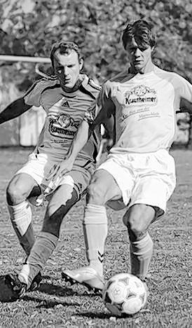 (rechts), verfolgt vom Frankenwinheimr Holger Götz. |